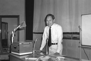 (251018) -- BEIJING, 18 octubre, 2025 (Xinhua) -- Imagen del 26 de mayo de 1986 de Chen Ning Yang presentando...