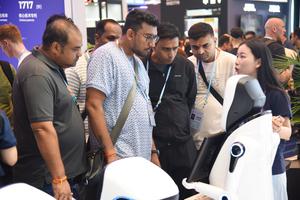 (251017) -- GUANGZHOU, 17 octubre, 2025 (Xinhua) -- Imagen del 16 de octubre de 2025 de compradores internacionales aprendiendo sobre...