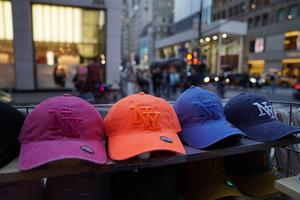 (251017) -- NUEVA YORK, 17 octubre, 2025 (Xinhua) -- Imagen del 16 de octubre de 2025 de gorras de béisbol...