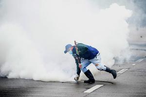 (251017) -- BOGOTA, 17 octubre, 2025 (Xinhua) -- Un hombre participa en una protesta frente a la Embajada de Estados...