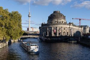 (251019) -- BERLIN, 19 octubre, 2025 (Xinhua) -- Imagen del 18 de octubre de 2025 del Museo Bode (d) y...