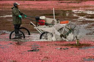 (251018) -- RICHMOND, 18 octubre, 2025 (Xinhua) -- Imagen del 17 de octubre de 2025 de un trabajador cosechando arándanos...