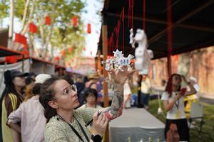(251018) -- JINGDEZHEN, 18 octubre, 2025 (Xinhua) -- Imagen del 17 de octubre de 2025 de una artista extranjera acomodando...