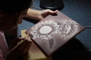 (251018) -- JINGDEZHEN, 18 octubre, 2025 (Xinhua) -- Imagen del 17 de octubre de 2025 de una artista pintando un...