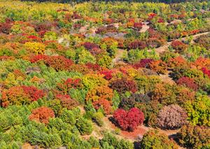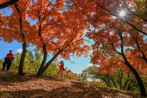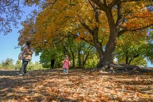 (251018) -- TONGLIAO, 18 octubre, 2025 (Xinhua) -- Turistas visitan un parque forestal, en la bandera trasera del ala izquierda...