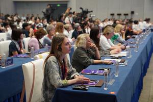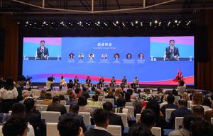 (251019) -- JINGDEZHEN, 19 octubre, 2025 (Xinhua) -- Invitados asisten a una sesión de diálogo de mesa redonda durante el...