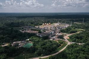 (251019) -- AMAZONAS, 19 octubre, 2025 (Xinhua) -- Imagen del 16 de octubre de 2025 de las instalaciones de producción...