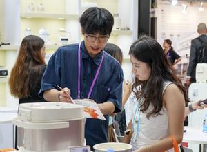 (251019) -- GUANGZHOU, 19 octubre, 2025 (Xinhua) -- Imagen del 15 de octubre de 2025 de un comprador consultando una...