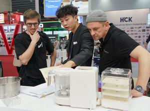 (251019) -- GUANGZHOU, 19 octubre, 2025 (Xinhua) -- Imagen del 16 de octubre de 2025 de un expositor presentando productos...