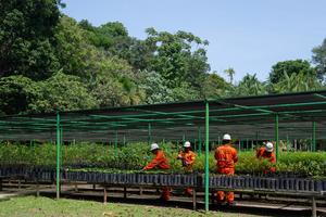 (251019) -- AMAZONAS, 19 octubre, 2025 (Xinhua) -- Imagen del 17 de octubre de 2025 de trabajadores cultivando semillas de...