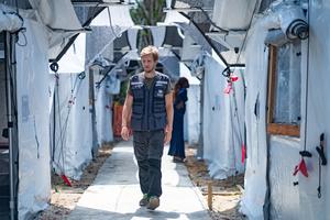 (251021) -- BELEN, 21 octubre, 2025 (Xinhua) -- Imagen del 19 de octubre de 2025 de un hombre palestino inspeccionando...