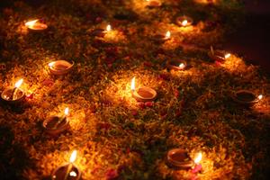 (251021) -- DHAKA, 21 octubre, 2025 (Xinhua) -- Imagen del 20 de octubre de 2025 de lámparas de aceite encendidas...