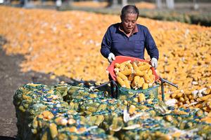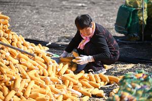 (251021) -- TIANJIN, 21 octubre, 2025 (Xinhua) -- Una agricultora clasifica maíz, en el municipio de Xiawotou del distrito de...