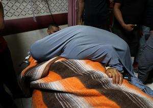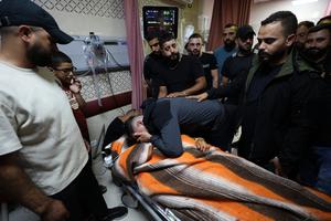 (251020) -- NAPLUSA, 20 octubre, 2025 (Xinhua) -- Imagen del 19 de octubre de 2025 de familiares lamentándose por un...