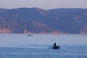 (251020) -- GONGHE, 20 octubre, 2025 (Xinhua) -- Imagen del 17 de octubre de 2025 de un pescador lanzando una...