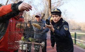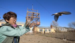 (251021) -- HARBIN, 21 octubre, 2025 (Xinhua) -- Imagen del 4 de noviembre de 2023 de un voluntario liberando aves...