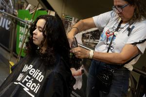 (251020) -- BUENOS AIRES, 20 octubre, 2025 (Xinhua) -- Una peluquera integrante de la Fundación Tijeras Solidarias le corta el...