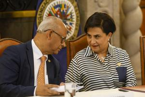 (251020) -- QUITO, 20 octubre, 2025 (Xinhua) -- La canciller ecuatoriana, Gabriela Sommerfeld (d), y el secretario general de la...