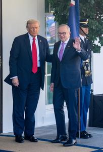 (251020) -- WASHINGTON, 20 octubre, 2025 (Xinhua) -- El presidente estadounidense, Donald Trump (i), da la bienvenida al primer ministro...