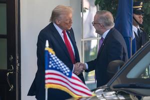 (251020) -- WASHINGTON, 20 octubre, 2025 (Xinhua) -- El presidente estadounidense, Donald Trump (i), da la bienvenida al primer ministro...