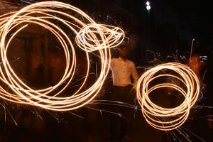 (251021) -- KARACHI, 21 octubre, 2025 (Xinhua) -- Personas juegan con fuegos artificiales para celebrar el Diwali, o festival de...