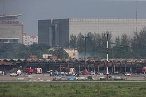 (251020) -- DHAKA, 20 octubre, 2025 (Xinhua) -- Imagen del 19 de octubre de 2025 del área de carga del...