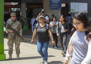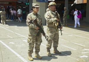 (251022) -- LIMA, 22 octubre, 2025 (Xinhua) -- Integrantes de la Fuerza Aérea del Perú montan guardia en la estación...