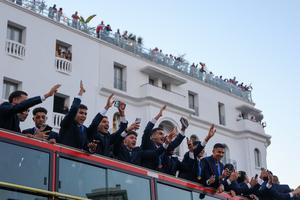 (251023) -- RABAT, 23 octubre, 2025 (Xinhua) -- Imagen del 22 de octubre de 2025 de la multitud festejando durante...