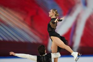 (251025) -- CHONGQING, 25 octubre, 2025 (Xinhua) -- Emilea Zingas (arriba)/Vadym Kolesnik, de Estados Unidos, realizan una presentación durante la...