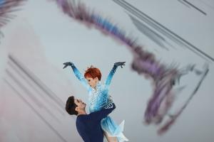(251025) -- CHONGQING, 25 octubre, 2025 (Xinhua) -- Evgeniia Lopareva (arriba)/Geoffrey Brissaud, de Francia, realizan una presentación durante la danza...