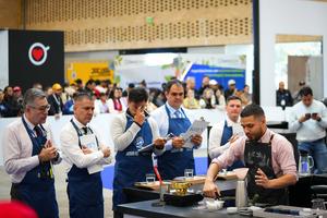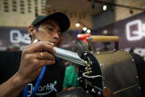 (251024) -- BOGOTA, 24 octubre, 2025 (Xinhua) -- Un barista prepara café durante la feria Cafés de Colombia Expo 2025...