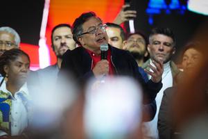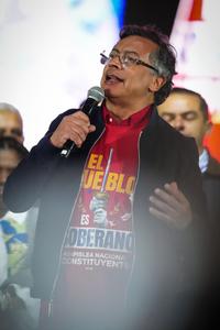 (251024) -- BOGOTA, 24 octubre, 2025 (Xinhua) -- El presidente colombiano, Gustavo Petro, pronuncia un discurso durante una concentración en...