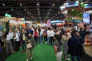 (251024) -- BOGOTA, 24 octubre, 2025 (Xinhua) -- Personas conversan durante la feria Cafés de Colombia Expo 2025 llevada a...