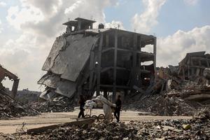 (251024) -- GAZA, 24 octubre, 2025 (Xinhua) -- Edificios destruidos son vistos en Jabalia, en el norte de la Franja...
