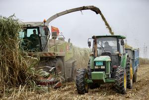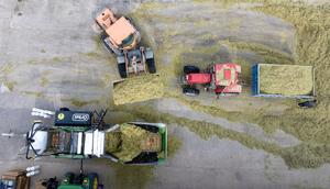 (251024) -- YINCHUAN, 24 octubre, 2025 (Xinhua) -- Imagen del 23 de octubre de 2025 de agricultores operando máquinas agrícolas...
