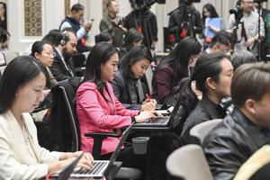 (251024) -- BEIJING, 24 octubre, 2025 (Xinhua) -- Periodistas trabajan en una conferencia de prensa celebrada por el Comité Central...