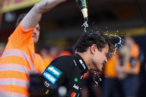 (251027) -- CIUDAD DE MEXICO, 27 octubre, 2025 (Xinhua) -- Imagen del 26 de octubre de 2025 del piloto británico de la escudería McLaren, Lando Norris, festejando con su equipo al término del Gran Premio de la Ciudad de México 2025 de Fórmula Uno, en el Autódromo Hermanos Rodríguez, en la Ciudad de México, capital de México. (Xinhua/Song Haiyuan) (rtg) (ah) (ce)