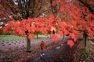 (251028) -- VANCOUVER, 28 octubre, 2025 (Xinhua) -- Imagen del 27 de octubre de 2025 de una mujer caminando bajo...