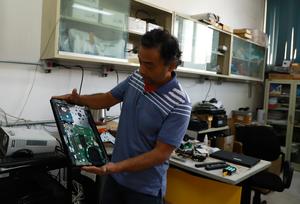 (251028) — CIUDAD DE MEXICO, 28 octubre, 2025 (Xinhua) — Imagen del 3 de octubre de 2025 del coordinador de la iniciativa denominada “Reciclatrón de Ciencias”, Luis Alberto Vázquez Maison, técnico académico del Departamento de Matemáticas de la Facultad de Ciencias de la Universidad Nacional Autónoma de México (UNAM), revisando una computadora, en la Ciudad de México, capital de México. Entre cables, memorias y pantallas, un grupo de académicos de la Facultad de Ciencias de la UNAM ha encontrado una forma de transformar el desecho en oportunidad, al recuperar computadoras en desuso para darles nueva vida y ayudar así a cuidar el medio ambiente, además de evitar que los jóvenes abandonen sus estudios. (Xinhua/Pool Contreras) (fc) (jg) (ra) (ce)