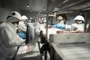 (251028) -- TRENEL, 28 octubre, 2025 (Xinhua) -- Imagen del 23 de octubre de 2025 de una trabajadora del Frigorífico...