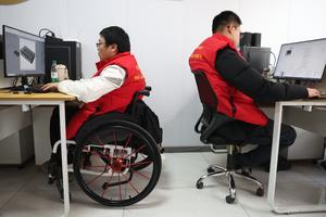 (251017) -- SHIJIAZHUANG, 17 octubre, 2025 (Xinhua) -- Una visitante prueba un vuelo simulado durante la Exposición Internacional de Economía...