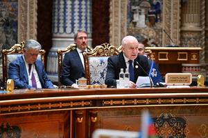 (251010) -- DUSAMBE, 10 octubre, 2025 (Xinhua) -- Una reunión del Consejo de Jefes de Estado de la Comunidad de...