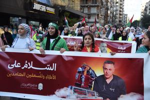 (251010) -- TRIPOLI, 10 octubre, 2025 (Xinhua) -- Imagen del 10 de octubre de 2025 de una marcha llevada a...