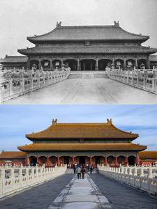 (251010) -- BEIJING, 10 octubre, 2025 (Xinhua) -- Imagen combinada del Palacio de la Pureza Celestial (Qianqing gong) del Museo...