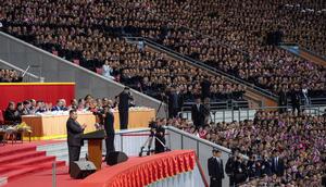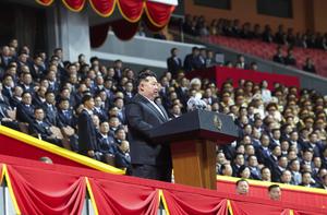 (251010) -- PYONGYANG, 10 octubre, 2025 (Xinhua) -- Imagen del 9 de octubre de 2025 de Kim Jong Un, secretario...