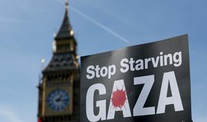 (251012) -- LONDRES, 12 octubre, 2025 (Xinhua) -- Imagen del 11 de octubre de 2025 de una pancarta sostenida por...