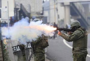(251009) -- SAN MIGUEL DEL COMUN, 9 octubre, 2025 (Xinhua) -- Policías se enfrentan con manifestantes durante un bloqueo en...
