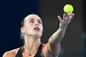 (251009) -- WUHAN, 9 octubre, 2025 (Xinhua) -- Aryna Sabalenka, de Bielorrusia, sirve la pelota durante el partido de octavos...