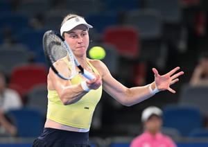 (251009) -- WUHAN, 9 octubre, 2025 (Xinhua) -- Liudmila Samsonova, de Rusia, devuelve la pelota durante el partido de octavos...