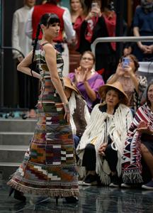 (251004) -- RICHMOND, 4 octubre, 2025 (Xinhua) -- Imagen del 3 de octubre de 2025 de una modelo presentando una...